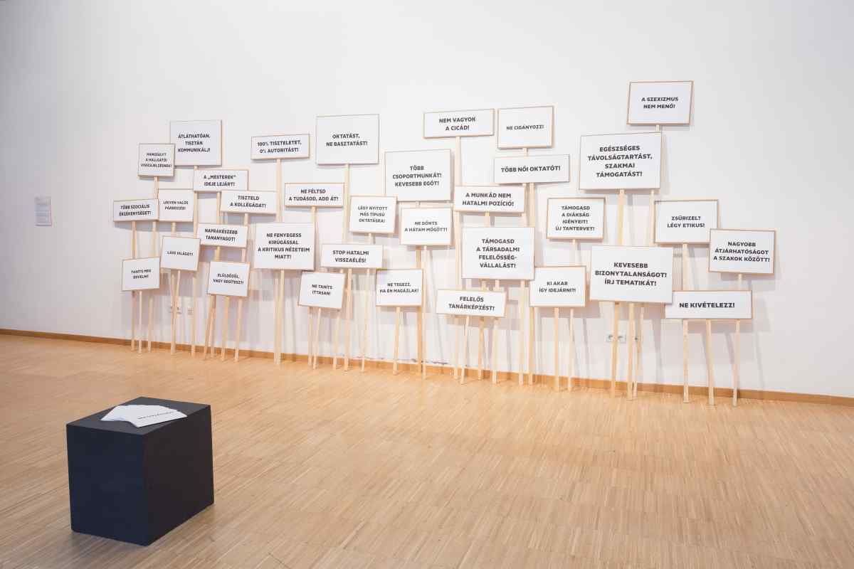 Our aim was that the problems artists have to face in this early stage of their career would be articulated by the end of the therapy. It was important from the very beginning that these discussions were not solely about the negative aspects of the institutional system, since we also wanted to formulate suggestions how to improve it. On the wall opposite the entrance, there is a list of the imperfections and problems of the current system, but we also added another list with the different development goals of the participating artists, which can also be relevant for every young professional.